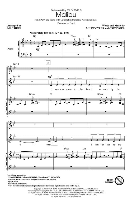Malibu Pop Choral Series 2 Part Miley Cyrus