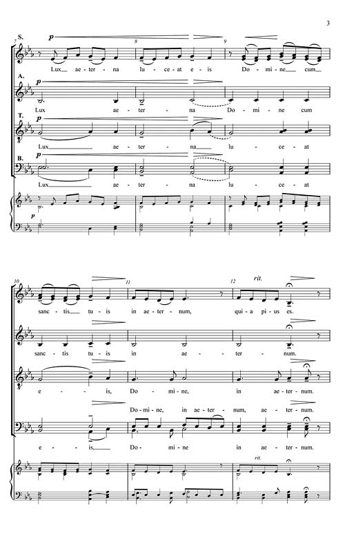 Lux Aeterna Publisher: Pavane Publishing Category: Choral Series: Pavane Choral Format: Octavo The initial musical theme that begins this piece becomes almost a passacaglia, repeating throughout the piece. But with Kevin's artistic touches it becomes the...Regular price $26.99 -