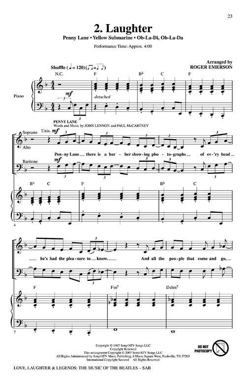 Love Laughter Legends Sab Pop Choral Series The Beatles