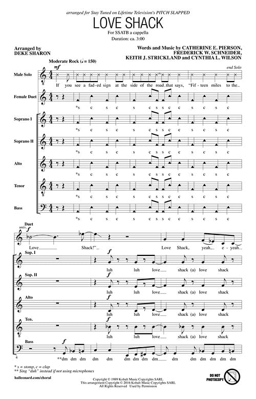 Love Shack Pop Choral Series Ssatb And Solo A Cappella Catherine
