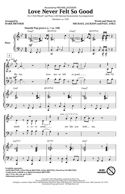 Love Never Felt So Good Pop Choral Series 3 Part Mixed Michael Ja