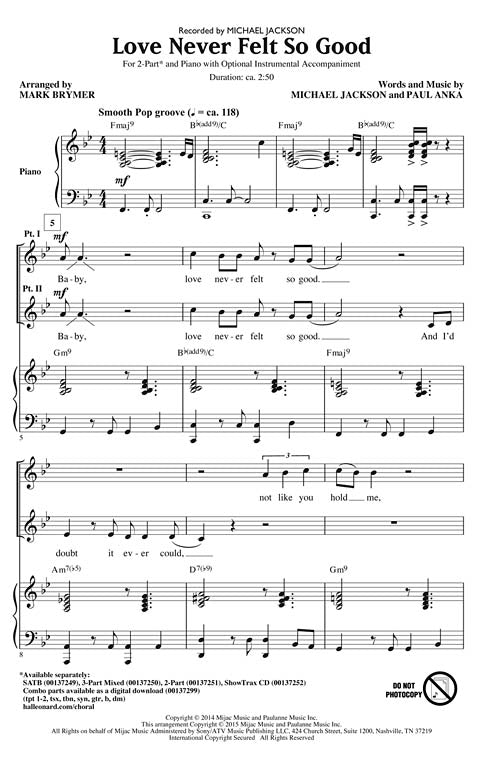 Love Never Felt So Good Pop Choral Series 2 Part Michael Jackson