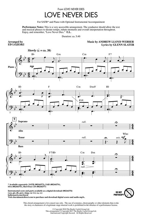 Love Never Dies Broadway Choral Satb Andrew Lloyd Webber