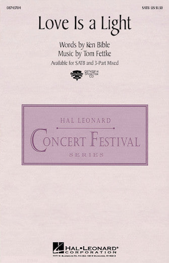 This Title Comes In Quantities Of Five (5) Copies(1 Order=5 Copies) Love Is a Light Arranger: Ken Bible (Tom Fettke/Ken Bible) Publisher: Category: Choral Series: Choral Format: Voicing: 3-Part Mixed This is guaranteed to light up...Regular price $17.99 -