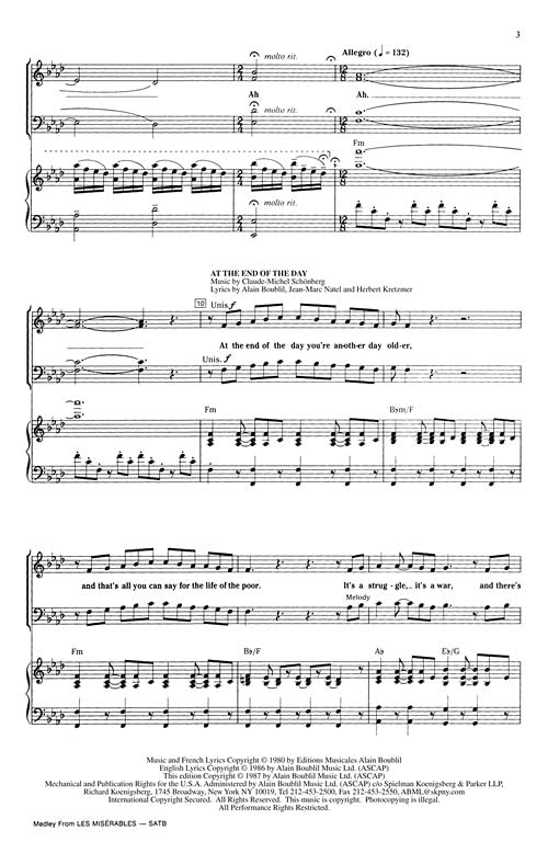 Les Miserables Choral Medley Satb Pop Choral Series Alain Boub