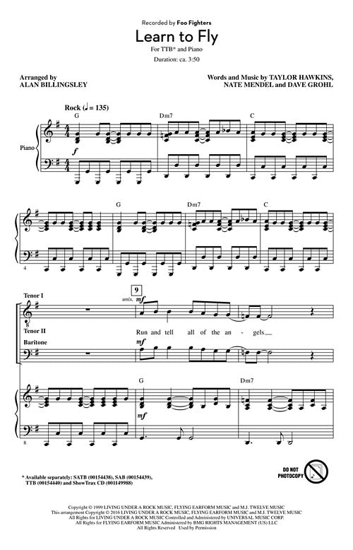 Learn To Fly Pop Choral Series Ttb Foo Fighters