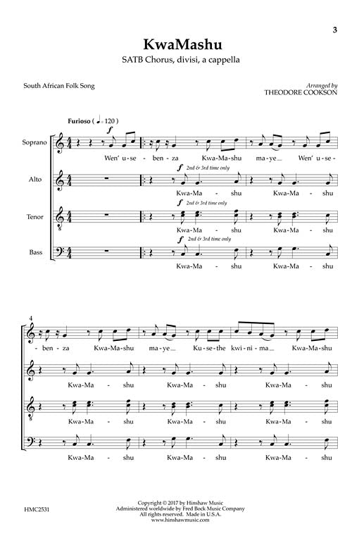 This Title Comes In Quantities Of Five (5) Copies(1 Order=5 Copies) KwaMashu South African Folk Song Author: Theodore Cookson arr. Theodore Cookson Publisher: Hinshaw Music Category: Choral Series: Hinshaw Music Format: Octavo Voicing: SATB The text...Regular price $26.99