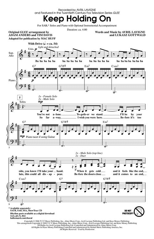 Keep Holding On Sab Pop Choral Series Avril Lavigne