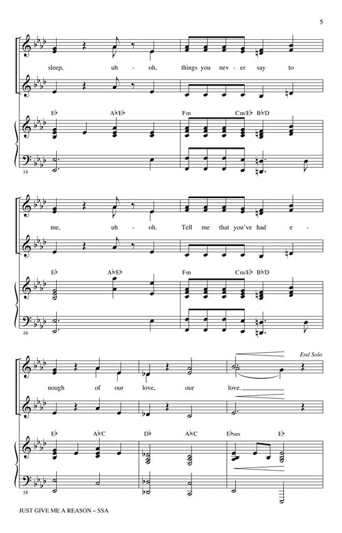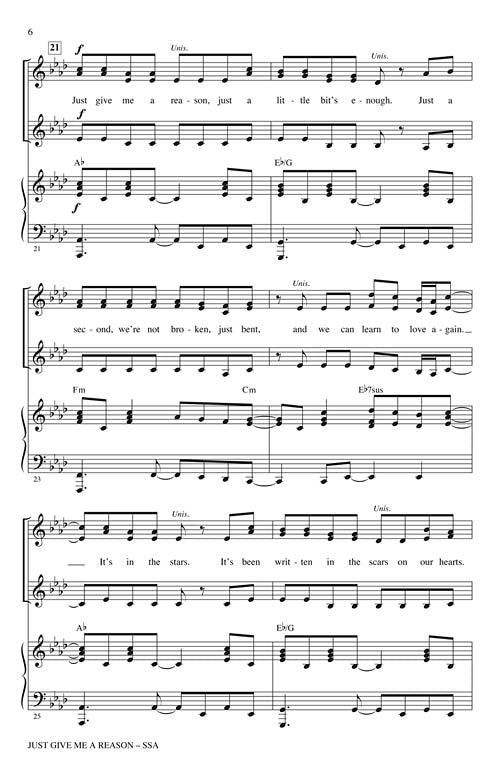 Just Give Me A Reason Pop Choral Series Ssa Pink Featuring Nate R