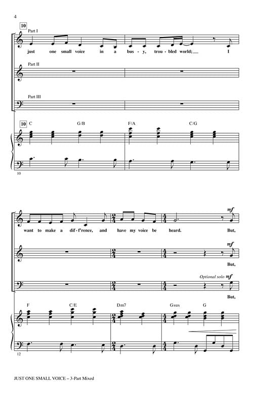 This Title Comes In Quantities Of Five (5) Copies(1 Order=5 Copies) Just One Small Voice 3-Part Mixed Composer: Don Besig Item# 08552437 Sheet MusicRegular price $23.99 -