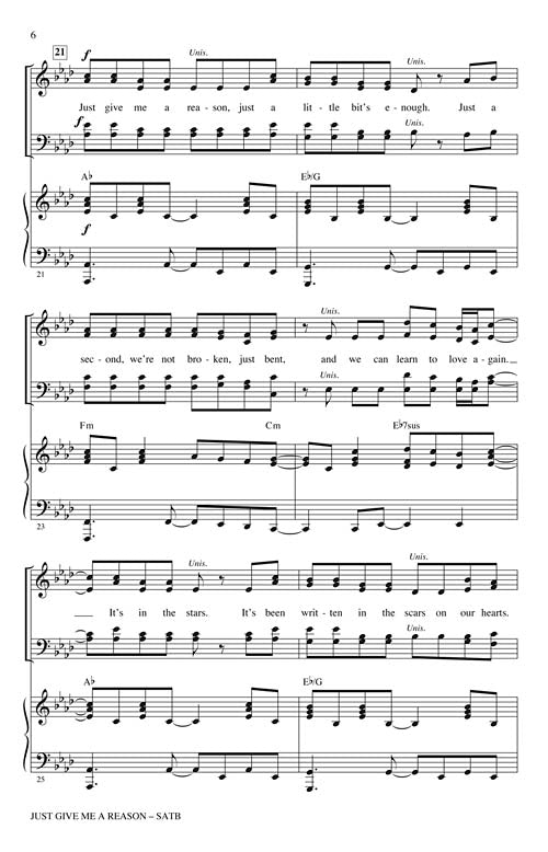Just Give Me A Reason Pop Choral Series Satb Pink Featuring Nate