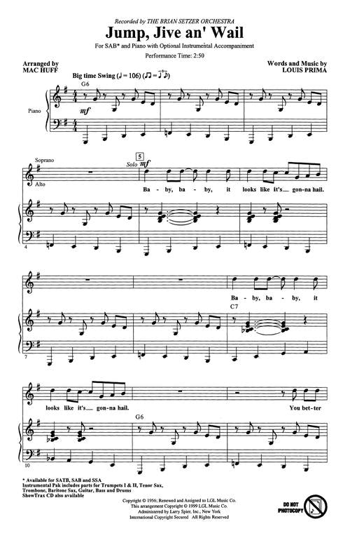 Jump Jive An Wail Sab Pop Choral Series The Brian Setzer Orches