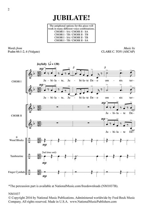 Jubilate National Emerson Fred Bock Sa Or Tb Acappella Clare Toy