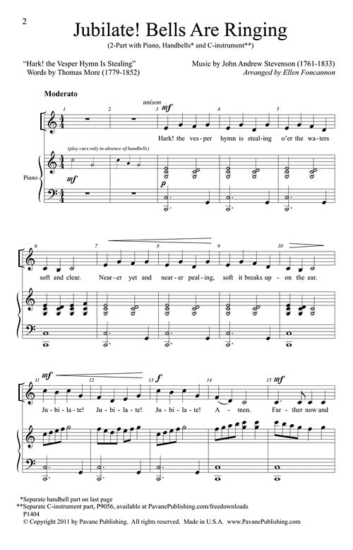 Jubilate! Bells Are Ringing Publisher: Pavane Publishing Category: Choral Series: Pavane Choral Format: Paperback Beginning with the 19th century hymn Hark the Vesper Hymn is Stealing, Ellen Foncannon brings a lively freshness. Including a simple handbell...Regular price $25.99 -