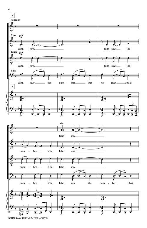 This Title Comes In Quantities Of Five (5) Copies(1 Order=5 Copies) John Saw the Number Octavo SATB Set in a spirited gospel swing, the traditional African American spiritual is paired with When the Saints Go Marching...Regular price $27.99 -