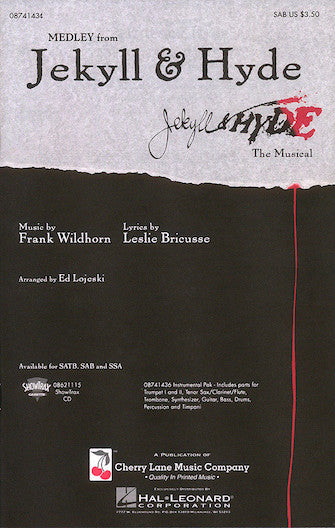 This Title Comes In Quantities Of Five (5) Copies(1 Order=5 Copies) Jekyll & Hyde (Medley) Composer: Frank Wildhorn (arr. Ed Lojeski) Publisher: CHERRY LANE MUSIC Category: Choral Series: Broadway Choral Format: Octavo Voicing: SAB Here is...Regular price $41.99 -