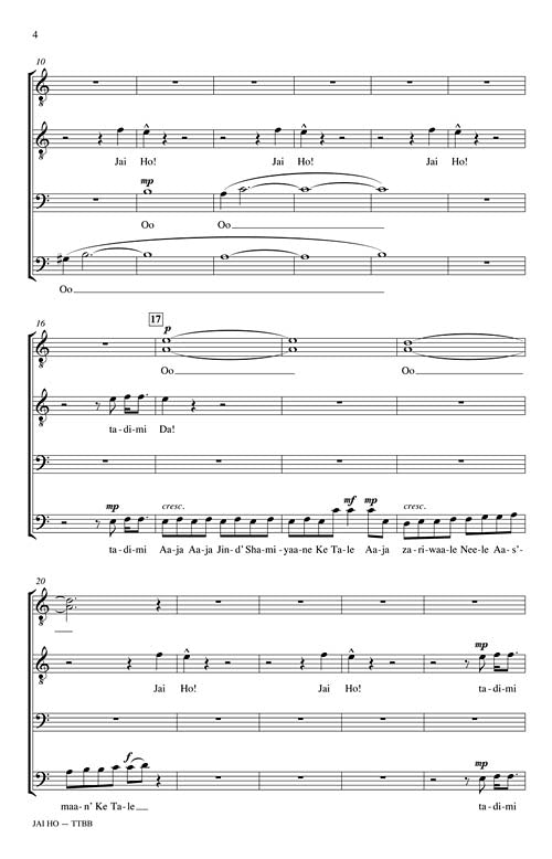 Jai Ho Sab Pop Choral Series Arranger Mark Brymer