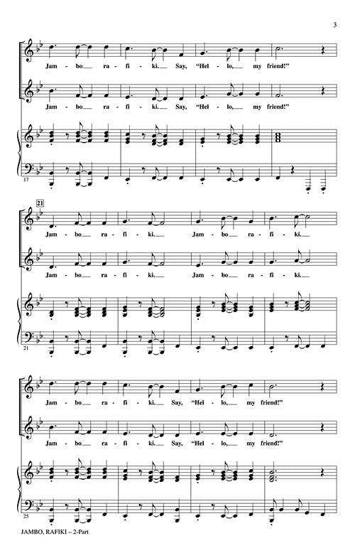 This Title Comes In Quantities Of Five (5) Copies(1 Order=5 Copies) Jambo, Rafiki 2-Part Composer: George L.O. Strid Item# 08564284 Sheet MusicRegular price $21.99 -