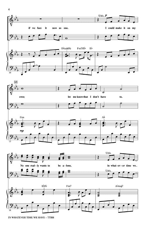 This Title Comes In Quantities Of Five (5) Copies(1 Order=5 Copies) In Whatever Time We Have Composer: Stephen Schwartz arr. Mac Huff Publisher: Category: Choral Series: Broadway Choral Format: Voicing: TTBB Exquisite lyrics and flowing vocal...Regular price $21.99 -