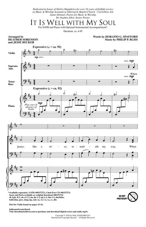 It Is Well With My Soul Brookfield Choral Series Satb W Violin P