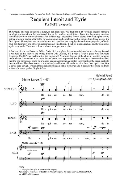 Introit And Kyrie H T Fitzsimons Co Satb A Cappella Gabriel Faur