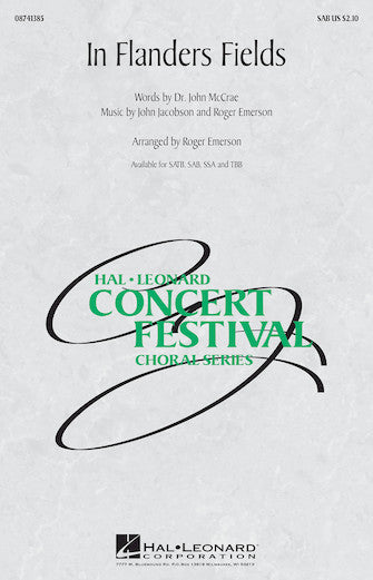 This Title Comes In Quantities Of Five (5) Copies(1 Order=5 Copies) In Flanders Fields Arranger: John Jacobson John Jacobson/Roger Emerson Publisher: Hal Leonard Category: Choral Series: Choral Format: Voicing: SAB Now available in a 2-Part voicing,...Regular price $28.99 -
