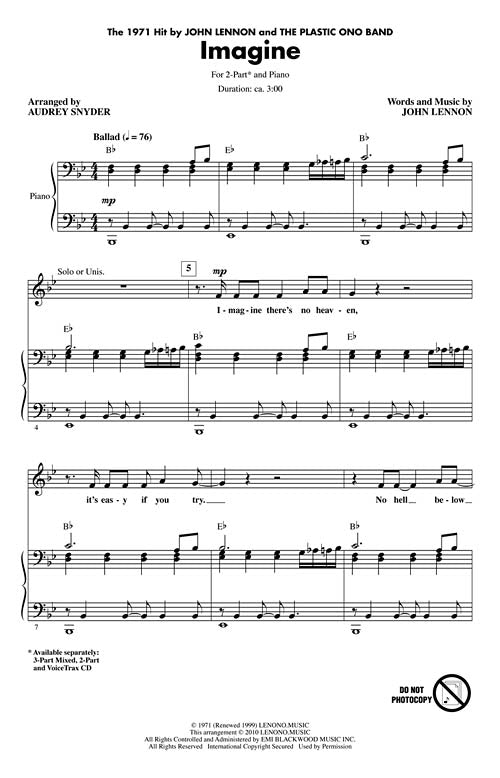 This Title Comes In Quantities Of Five (5) Copies(1 Order=5 Copies) Imagine 2-Part Artist: John Lennon Item# 08552215 Sheet MusicRegular price $23.99 -