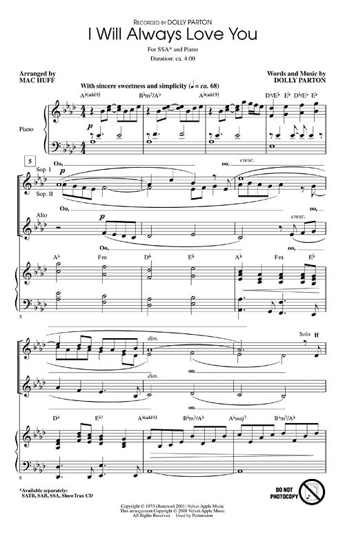 I Will Always Love You Ssa Pop Choral Series Dolly Parton
