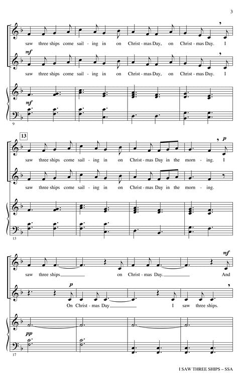 I Saw Three Ships Sacred Christmas Choral Ssa Arranger Audrey Sn