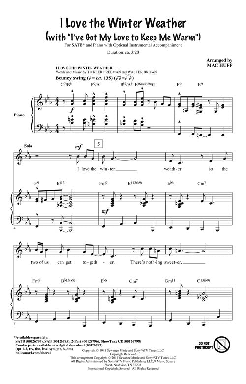 This Title Comes In Quantities Of Five (5) Copies(1 Order=5 Copies) I Love the Winter Weather (with I've Got My Love to Keep Me Warm) 2-Part Two standards originally paired by the great Tony Bennett make...Regular price $27.99 -