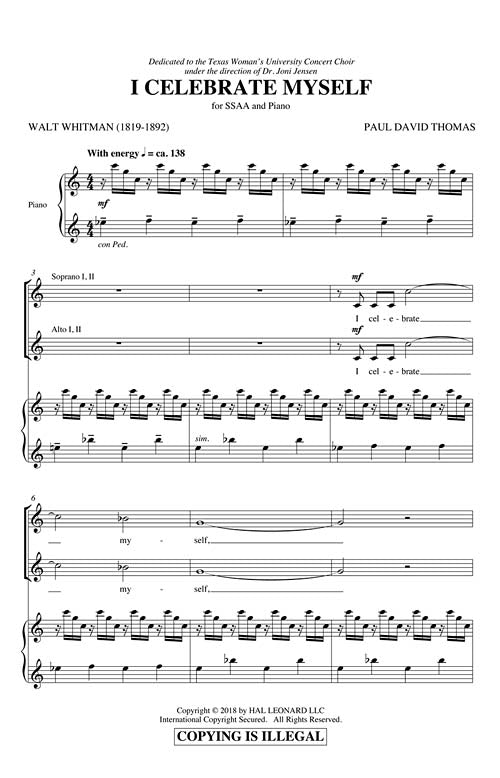 I Celebrate Myself Joni Jensen Choral Series Ssaa Paul Thomas Coo