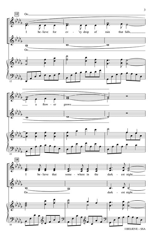 I Believe Pop Choral Series Ssa Al Stillman