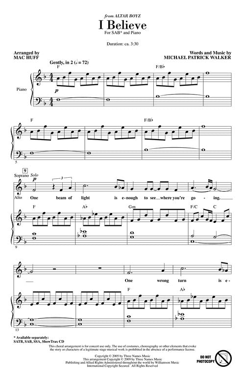 This Title Comes In Quantities Of Five (5) Copies(1 Order=5 Copies) I Believe (from Altar Boyz) Composer: Mac Huff arr. Mac Huff Publisher: Category: Choral Series: Broadway Choral Format: Voicing: SAB From the Off-Broadway show Altar...Regular price $22.99