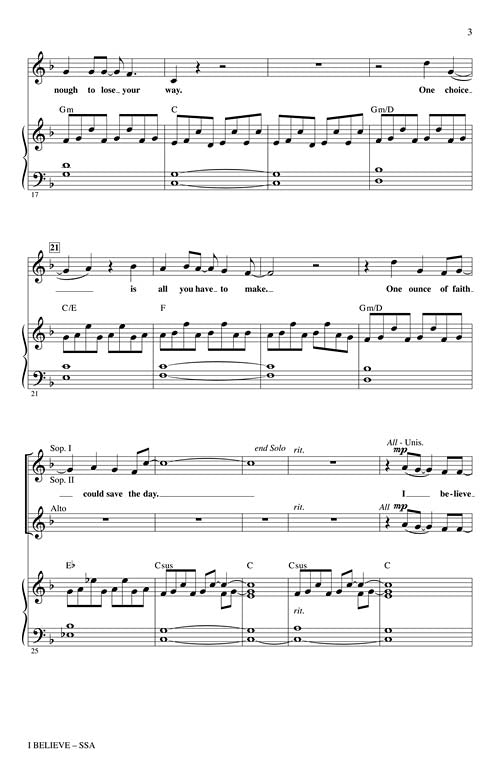 This Title Comes In Quantities Of Five (5) Copies(1 Order=5 Copies) I Believe (from Altar Boyz) Composer: Mac Huff arr. Mac Huff Publisher: Category: Choral Series: Broadway Choral Format: Voicing: SSA From the Off-Broadway show Altar...Regular price $22.99 -