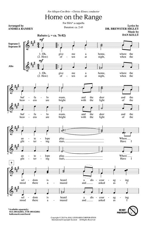 Home On The Range Choral Ssa A Cappella Dan Kelly