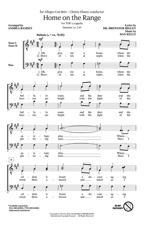 Home On The Range Choral Ttb A Cappella Dan Kelly