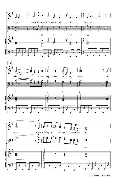 This Title Comes In Quantities Of Five (5) Copies(1 Order=5 Copies) Hey Brother Publisher: Hal Leonard Category: Choral Series: Pop Choral Series Format: Paperback Inventory # : 00131227 UPC: 888680024611 ISBN: Width: 6.75" Length: 10.5" Height:...Regular price $26.99