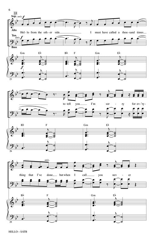 This Title Comes In Quantities Of Five (5) Copies(1 Order=5 Copies) Hello Publisher: Hal Leonard Category: Choral Series: Pop Choral Series Format: Octavo Inventory # : 00155483 UPC: 888680600433 ISBN: Width: 6.75" Length: 10.5" Height: 0.036"...Regular price $27.99 -