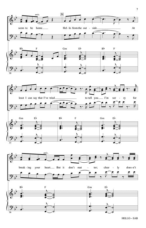 Hello Goodbye 3 Part Mixed Pop Choral Series Arranger Audrey Sn