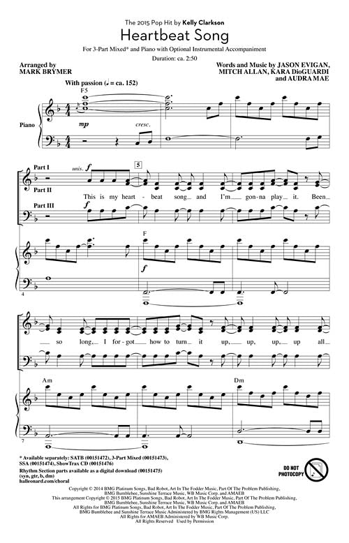 Heartbeat Song Pop Choral Series 3 Part Mixed Kelly Clarkson
