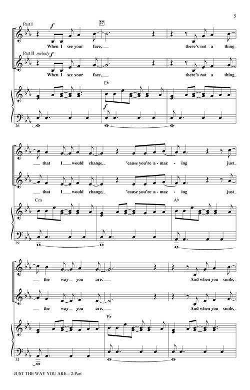 Just The Way You Are 2 Part Pop Choral Series Bruno Mars