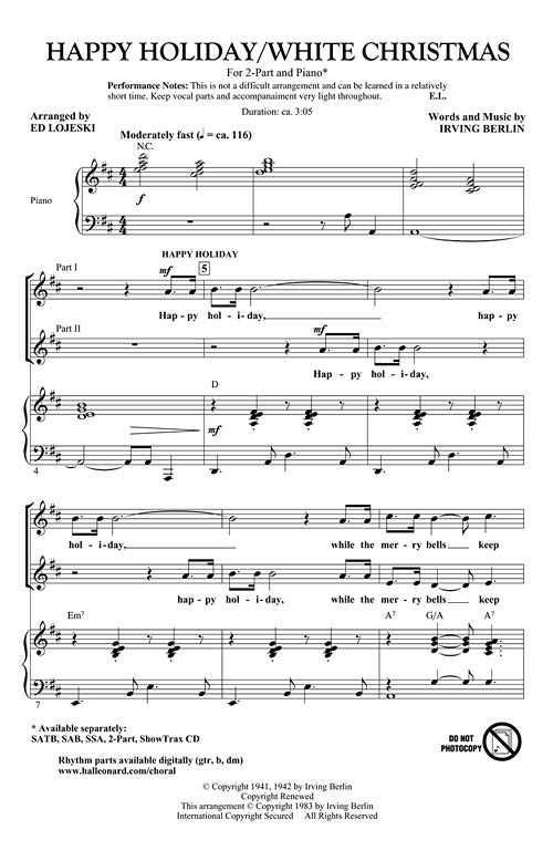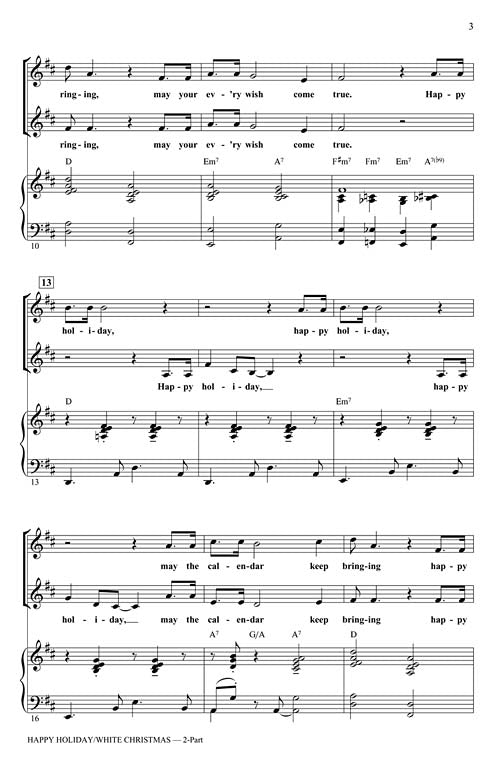 Happy Holiday White Christmas 2 Part Pop Choral Series Irving Ber