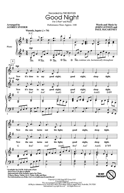 This Title Comes In Quantities Of Five (5) Copies(1 Order=5 Copies) Good Night Publisher: Hal Leonard Category: Choral Series: Pop Choral Series Format: Paperback Inventory # : 08201907 UPC: 884088059668 ISBN: Width: 6.75" Length: 10.5" Height:...Regular price $20.99 -