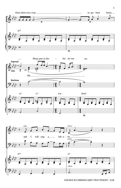 Golden Slumbers Carry That Weight Pop Choral Series Sab Jennifer