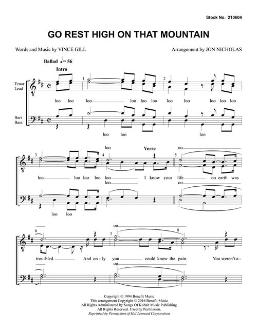 This Title Comes In Quantities Of Five (5) Copies(1 Order=5 Copies) Go Rest High on That Mountain Octavo TTBB a cappella This classic country ballad, written and originally recorded by country music artist Vince Gill, sets...Regular price $38.99 -