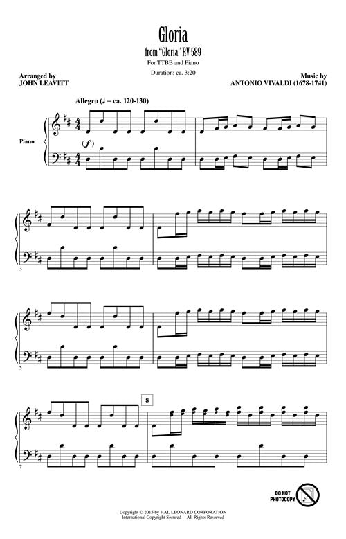 Gloria Treasury Choral Ttbb Antonio Vivaldi