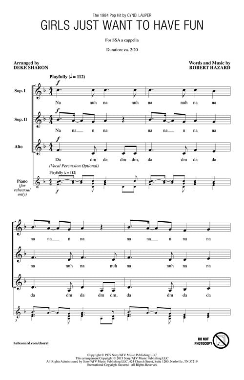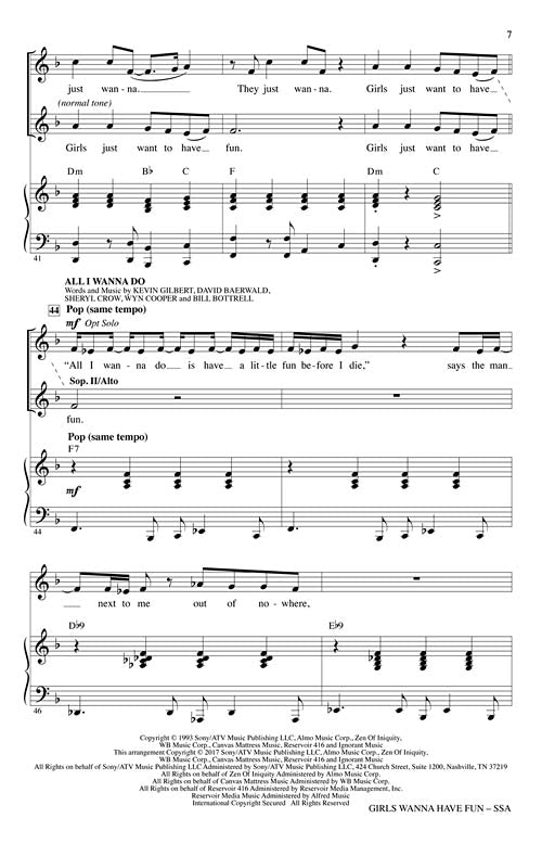 Girls Just Want To Have Fun Pop Choral Series Ssa A Cappella Cynd