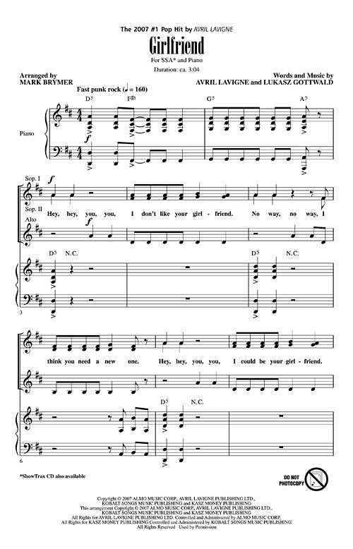 Girlfriend Ssa Pop Choral Series Avril Lavigne