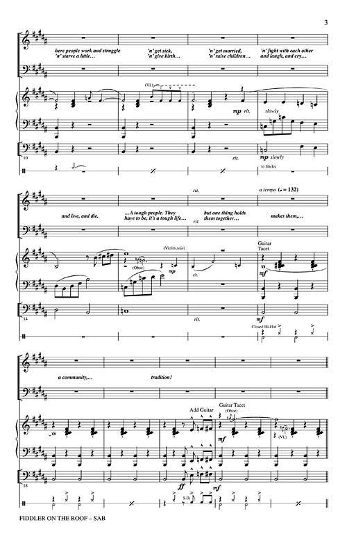 Fiddler On The Roof Choral Medley Sab Arranger Ed Lojeski