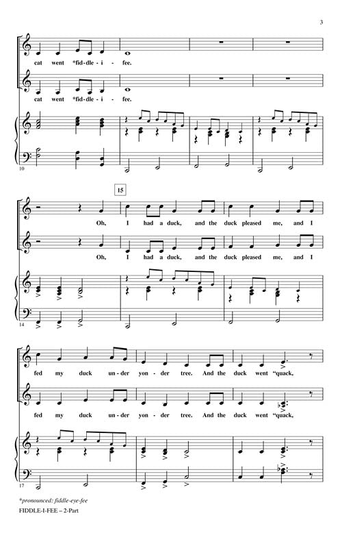 This Title Comes In Quantities Of Five (5) Copies(1 Order=5 Copies) Fiddle-I-Fee Composer: John Purifoy arr. John Purifoy Publisher: Category: Choral Series: Festival Choral Format: Voicing: 2-Part The cat, the duck, the cow, the goose and...Regular price $21.99 -